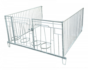 DUAL XL RANCHER HUTCH: An Industry First! For Paired Calves up to 8 weeks old. (Shown with optional Wire Fence, Plastic Bottle Holders, and Quick Attach Pails)