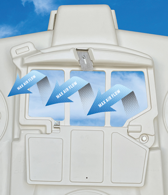 We redesigned the door, increasing the air flow capacity by 82%. This multi-functional door also has 30% more access for bedding and feed when fully opened. For complete weather protection, the flap on the door can be fully closed and locked with a sliding metal latch. The integrated eyebrow ledge directs water away.