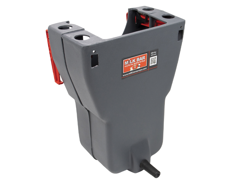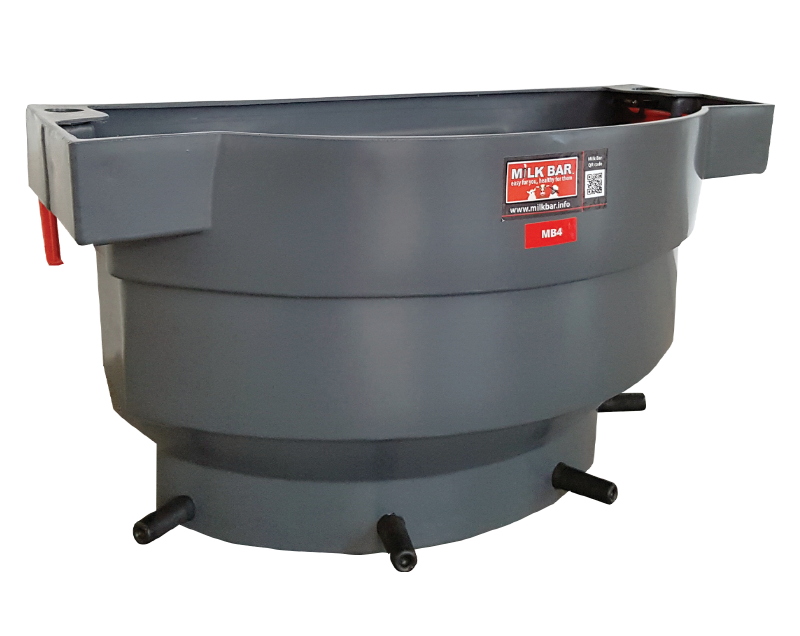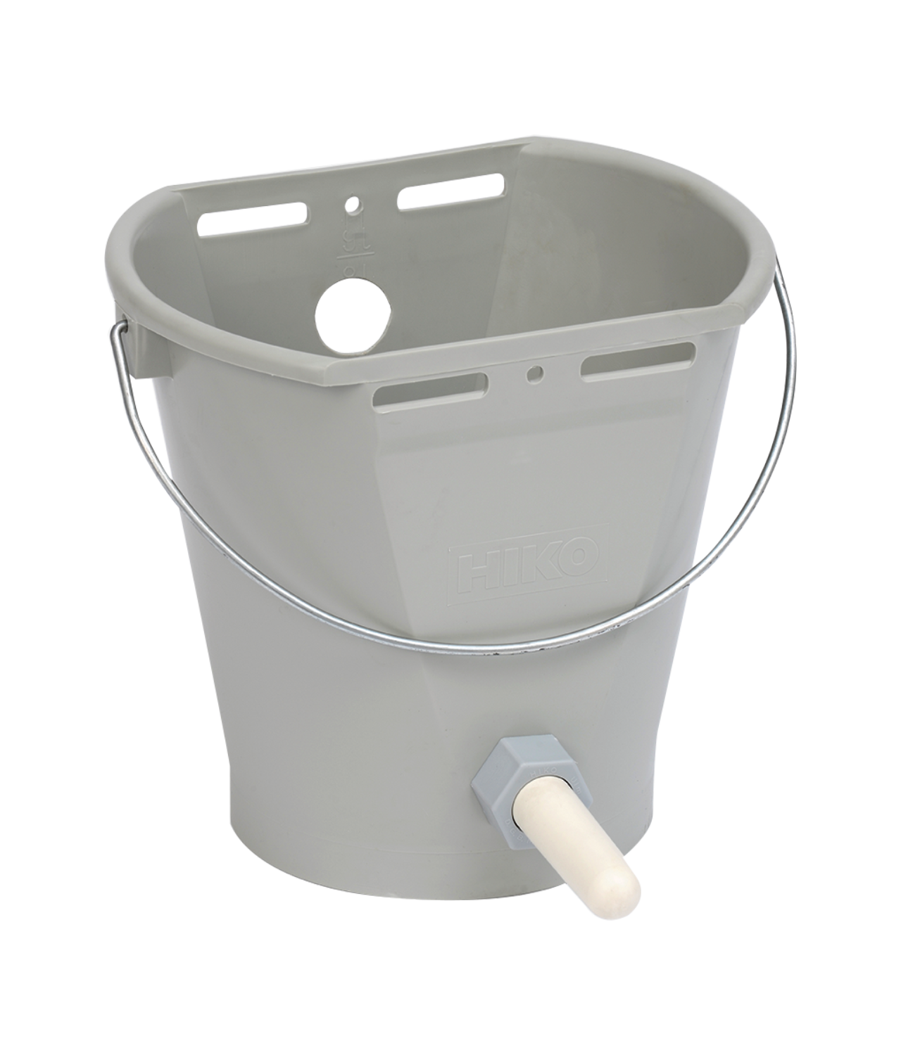 9.5 Qt. Bucket with handle, teat and valve. Flat front and back gives the bucket stability.